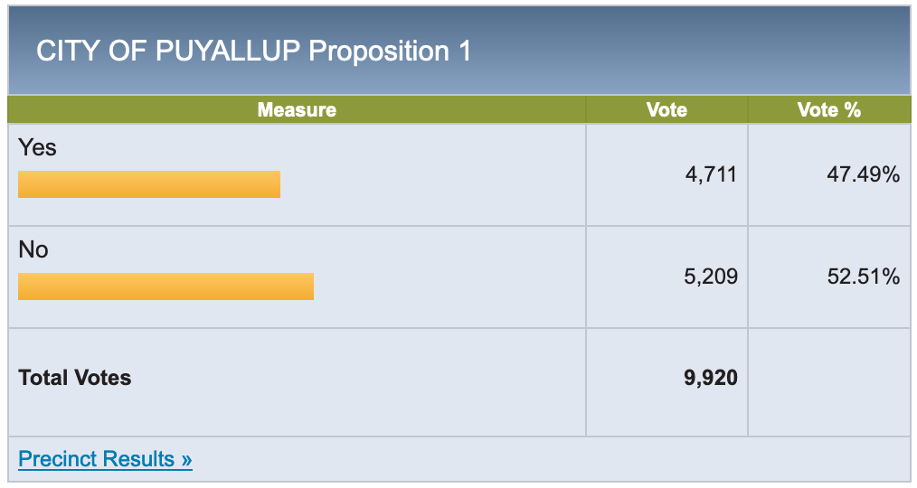 +/- 20% of voters we talked to said they were thinking about voting in favor until they saw the Puyallup Voters for Integrity mailer and its alternative solutions to the problem such as utilizing our Pierce County Jail;