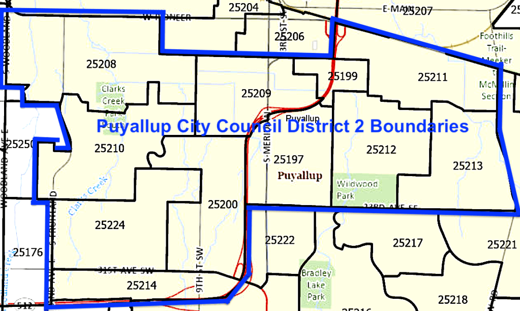If you are registered to vote in the City of Puyallup but not in District 2, please click the link below corresponding to your voting district. See map for reference. Puyallup Voters for Integrity will publish blog posts every Tuesday through election day with updates on the district surveys. If you live inside city limits and are not registered to vote, first go to https://www.piercecountywa.gov/6572/Register-to-Vote and then click for the District survey corresponding to your address.