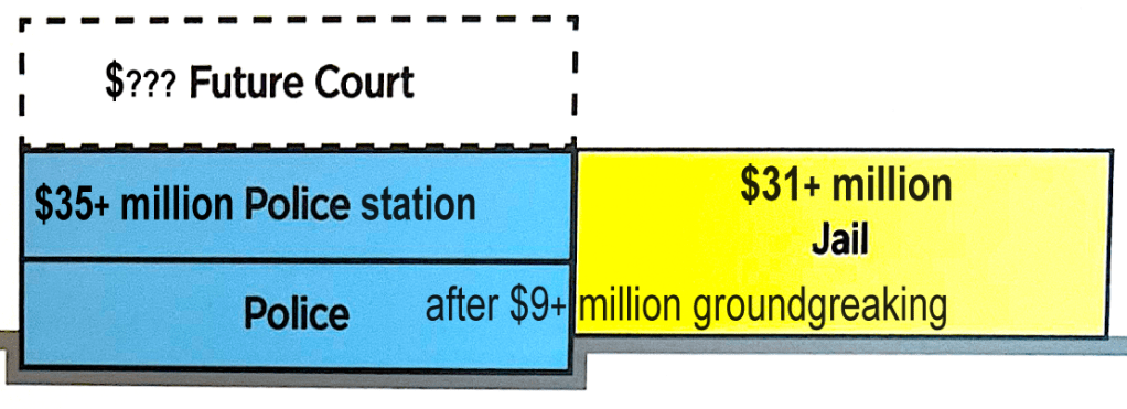 Yes and sadly, yes. We in Puyallup are of course Pierce County taxpayers, and our county jail is running with about 800 daily inmates, plus about 400 funded beds sitting empty, and another 500 unfunded beds sitting idle. Wait, what? That’s 900 available beds? Yes, our county jail is more than half empty. Our question is: why would our city council and police department ask us to raise taxes to build a new jail when we could be bringing our inmates to our county jail – a jail we already pay property and sales taxes to fund? Yes we need a new city police station, but new jail space is more than unnecessary. The county jail is our jail. It’s where we already bring all felony inmates, and it’s where surrounding Pierce County towns and cities bring their misdemeanor inmates (plus contracting with the Nisqually Jail, SCORE, Yakima – and some little cities like Milton also contract to bring a few of their inmates to our old jail for $120/night). Our police chief and city manager refuse to even look into contracting with Pierce County to use the empty jail space we’re already paying for. Our question is: why pay twice to run our own city jail and not utilize our county jail, let alone pay 30 years of increased property tax and drain the city’s general sales tax fund to build a jail we don’t need? By contracting with our Pierce County jail and the Nisqually jail, the Tacoma Office of Budget & Management says they spent just $1.2 million on all jail services in 2022. We spend $2.1 million to run our old jail, according to our police chief. Broken down per taxpayer, that means each of us in Puyallup are paying 10 times what taxpayers in Tacoma are paying: $1.2 divided by 220,000 population = $5.45; versus our $2.1 million divided by 42,000 population = $50.00 each!